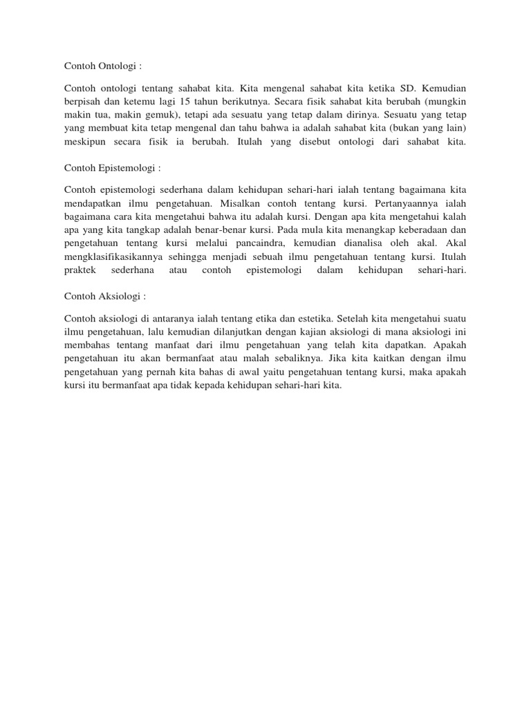 1 Ontologi Epistemologi Dan Aksiologi Dalam Kehidupan Sehari Hari Pdf